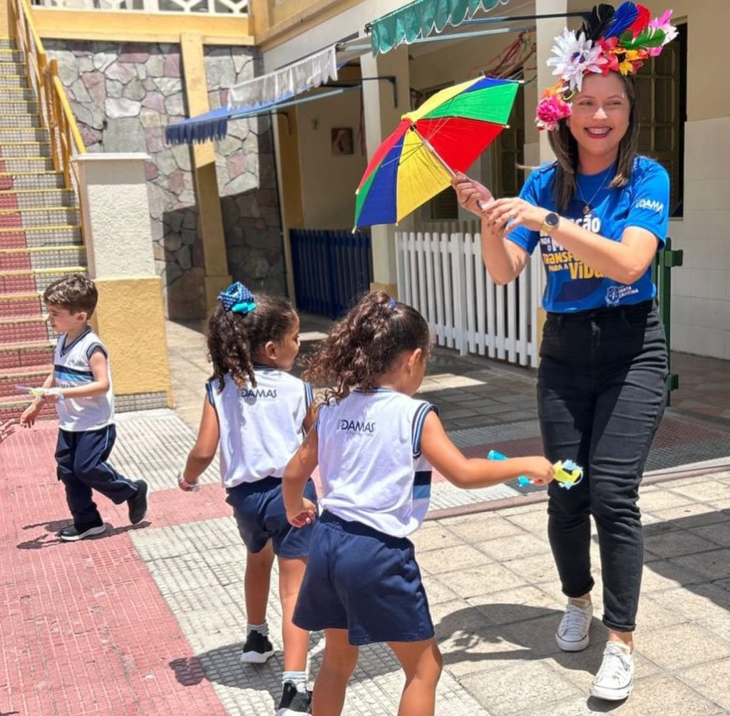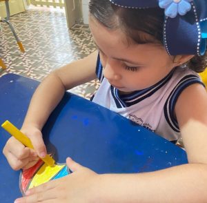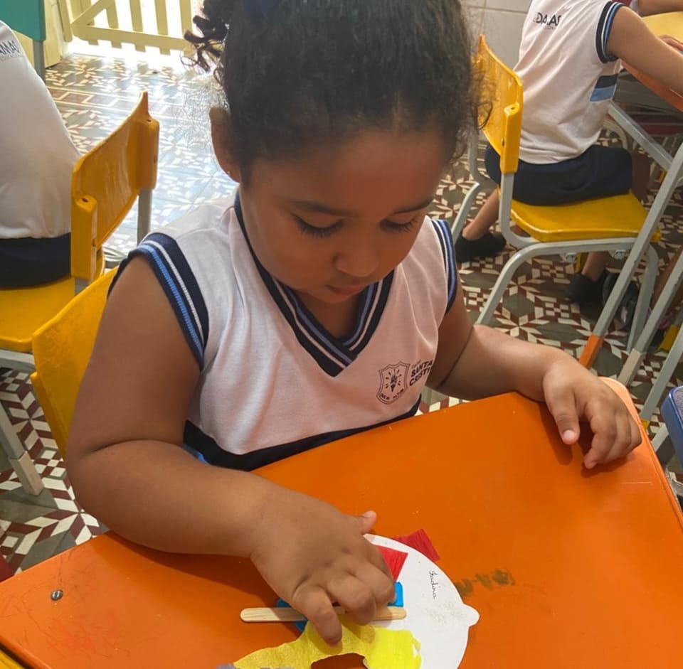 Os estudantes do Infantil III viveram uma experiência imersiva no mundo vibrante do frevo. A atividade começou com a confecção das tradicionais sombrinhas, momento em que exploraram cores, formas e a criatividade, desenvolvendo a coordenação motora e a expressão artística.